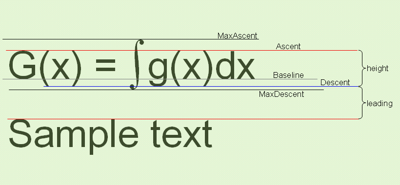 the current font object is a non-scalable bitmap font)public int getBaselinePosition()
